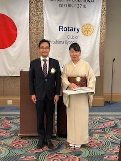 2010年、エリザベト音楽大学の1年生向け英会話講座の講師を依頼されました。音楽学生向けの教材がなかったため、自作の教材を作成し、改訂を重ね、現在はエリザベト音楽大学、大阪大学、東京音楽大学でも使用されています。私がロータリー会員の皆様と初めて出会った年の思い出はとても幸せなものです。浜崎さんが結婚祝いにご自身の船(瀬戸内海汽船の銀河)に私たち夫婦をご招待くださいました。浜崎さんのボートの上で、ロータリークラブから結婚祝いをいただいたことまた、沖美町への遠足にも多くのロータリーの皆様と参加し、楽しみました。古谷さんの通訳をお手伝いしたところ、工場を案内していただきました。